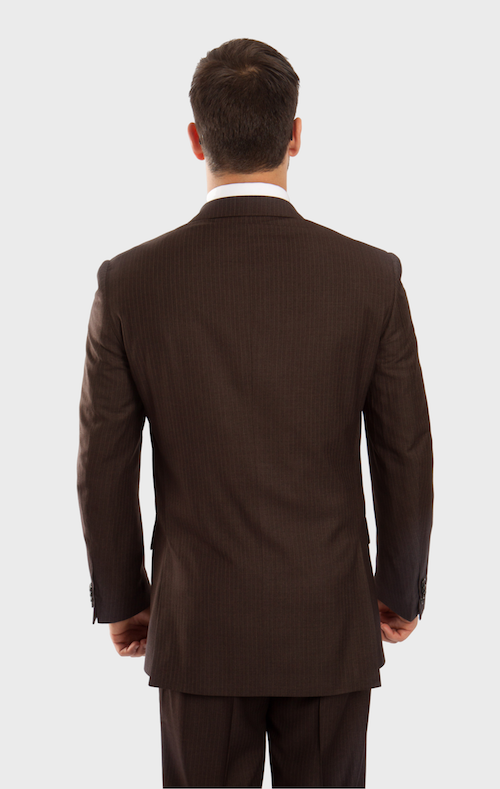 This two-piece single breasted dark olive green pinstripe suit is a classic cut that never goes out of style. Its narrow lapels won't make it look dated and help create a slimming appearance. The cutaway lower front makes the jacket suitable for wear at formal events, work situations, and anywhere else a suit is called for. The included pants complete the look with their straight leg cut and flat front that never goes out of style.