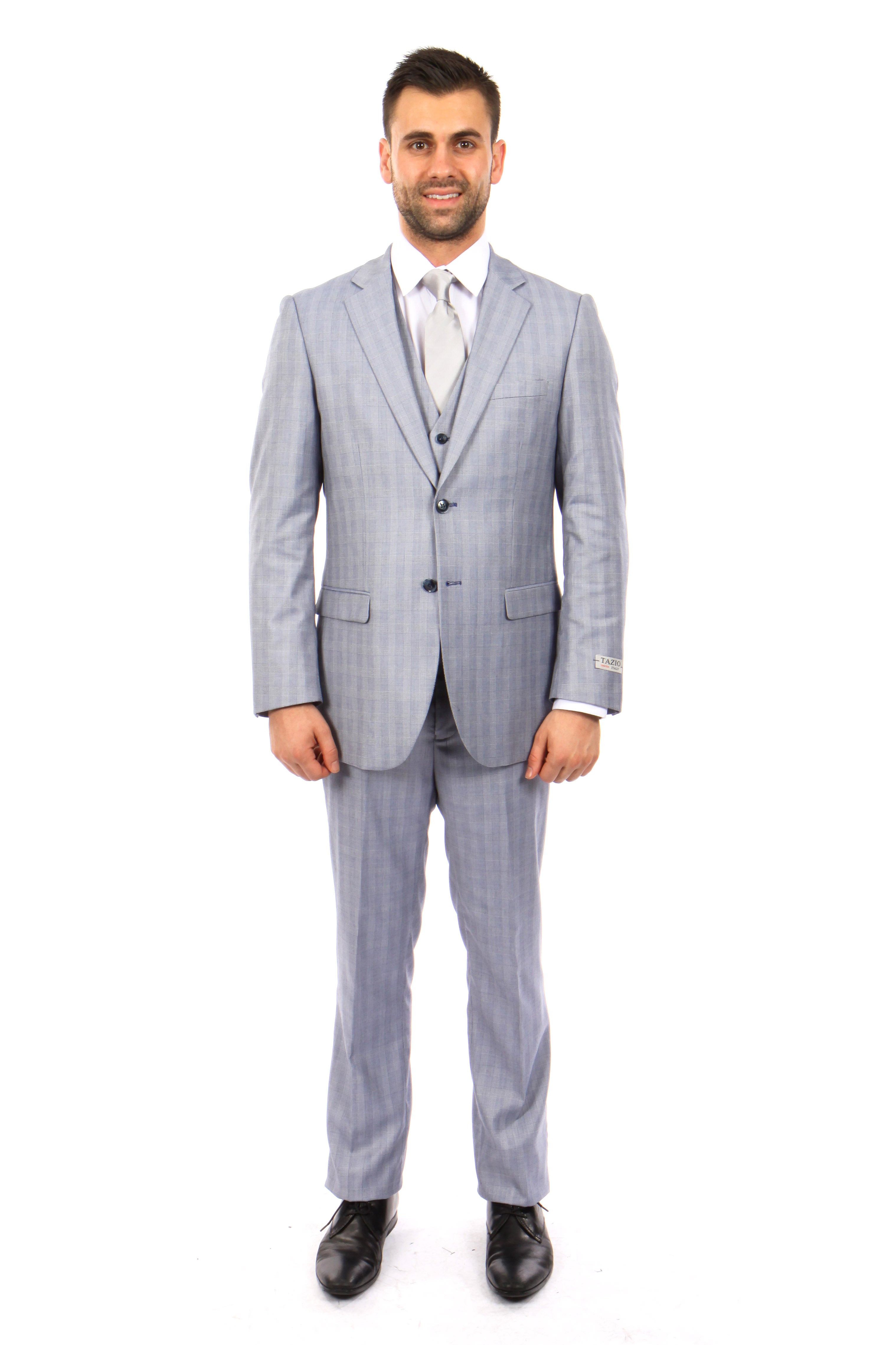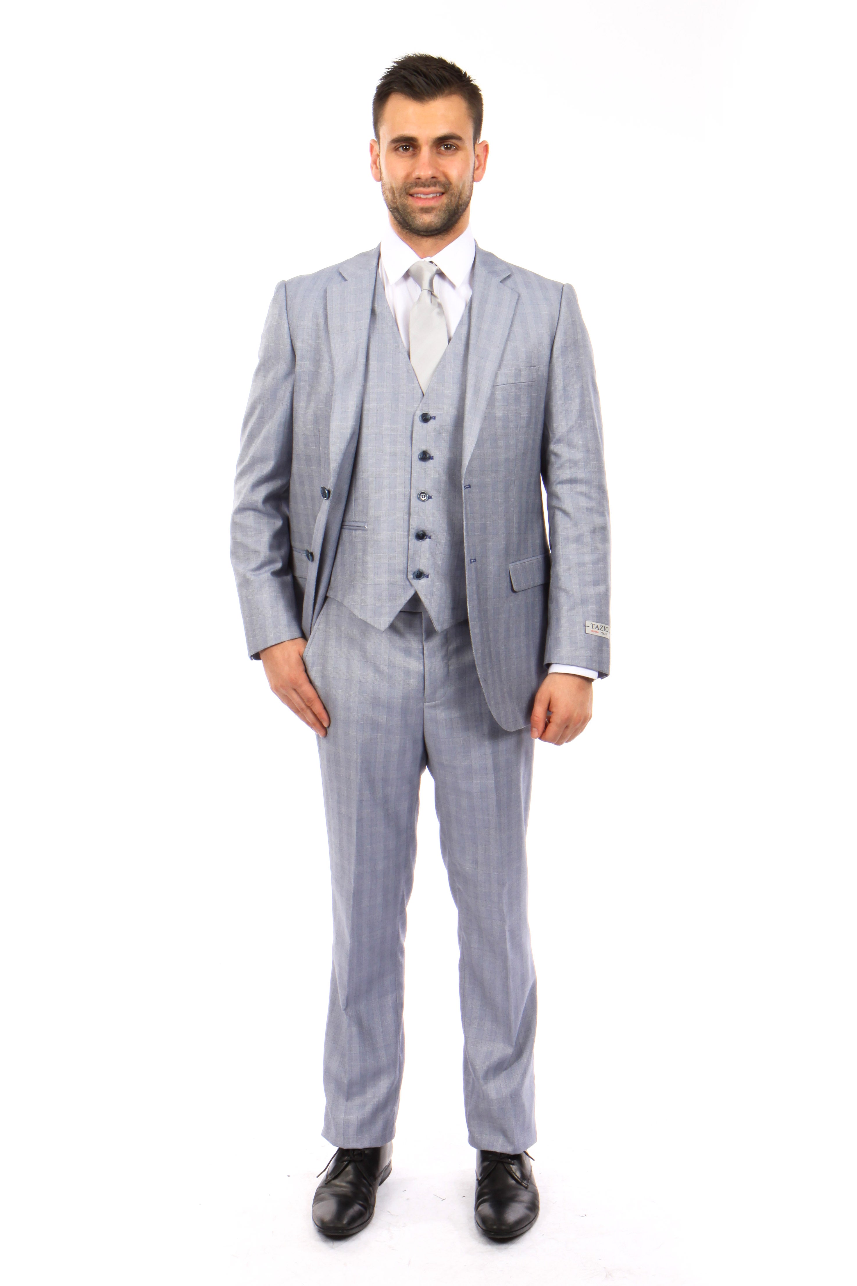 Stand out at the workplace in this suave windowpane check Light blue formal suit for men; wear the pieces together to the office for business meetings, or wear as men's suit separates for a more casual look. The fabric features a check pattern to bring the classic styling up-to-date. This is sophisticated men's suit fashion styling at its best, combining the comfort factor with eye-catching details you will love.