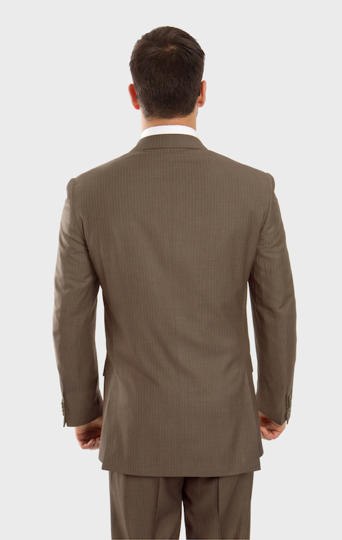 This two-piece single breasted light olive green pinstripe suit is a classic cut that never goes out of style. Its narrow lapels won't make it look dated and help create a slimming appearance. The cutaway lower front makes the jacket suitable for wear at formal events, work situations, and anywhere else a suit is called for. The included pants complete the look with their straight leg cut and flat front that never goes out of style.