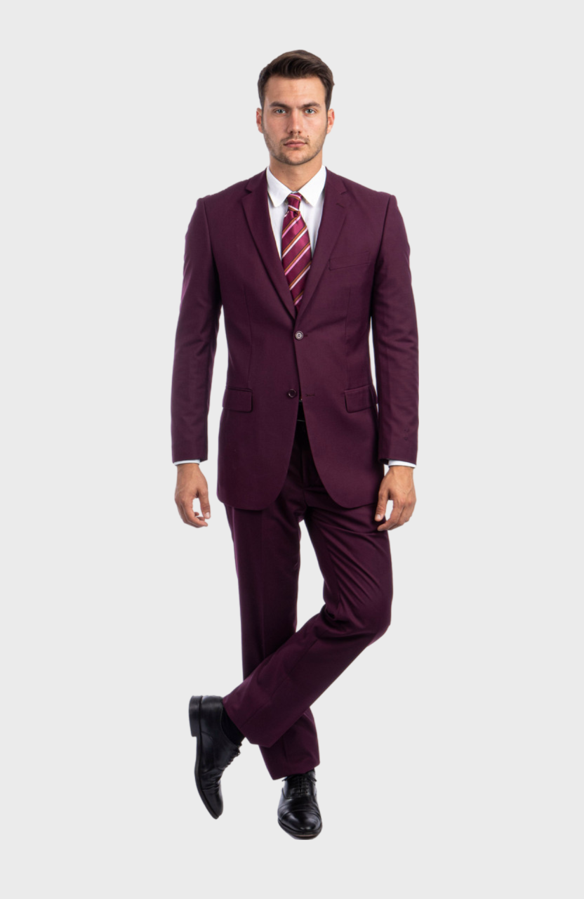 Tasteful and sophisticated, this modern burgundy men's suit features ingenious sweat guards to help you stay composed, plus super-functional interior pockets. This classic business suit for men can be worn all year round and showcases understated elegance with all the hallmarks of refined Italian suit design.