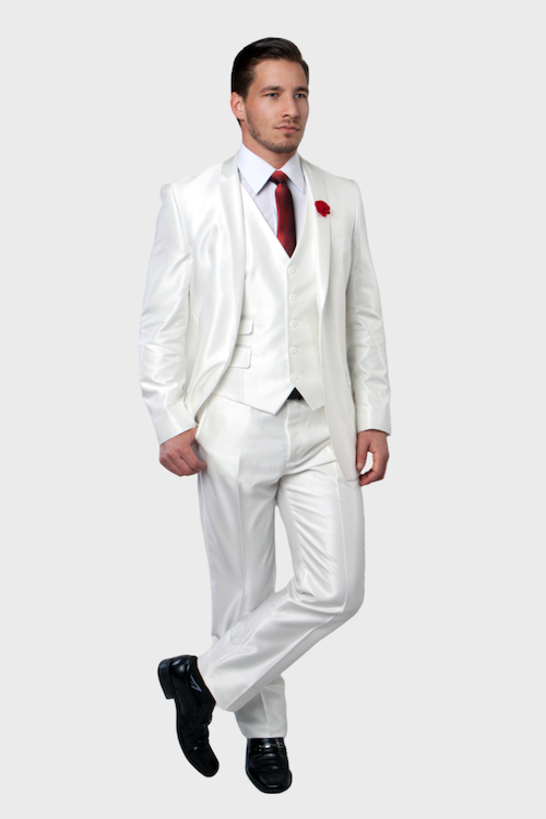 This luxurious men's ivory 3 piece suit makes the perfect wedding apparel! Wear as a homecoming suit, church suit, or prom suit for men for a classically-inspired, suave look. Wear as men's suit separates and showcase the smart vest to demonstrate your debonair style.