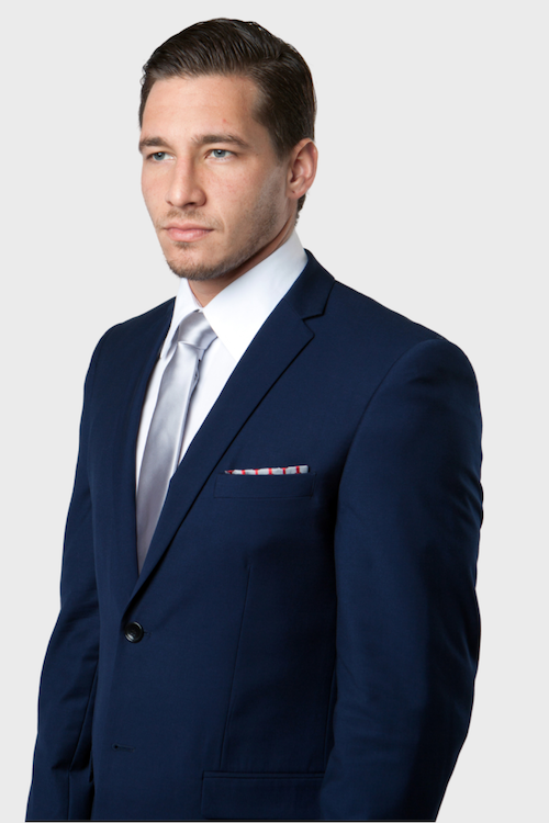 This navy blue 2-button slim cut suit will keep you at the forefront of fashion with its clean, straight lines. The notch lapels give the suit a contemporary appearance so you can wear it for years to come and stay stylish. The two button front is cut so you can show off your favorite tie while looking elegant. The flat front pants helps make you look fit and trim. Pants can be trimmed to length.